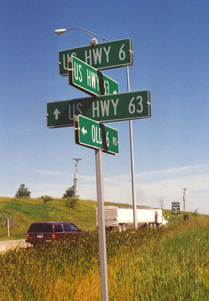 Here at the intersection of U.S. 63, Old 6 heads east to Brooklyn.
