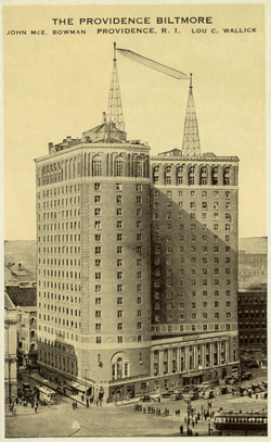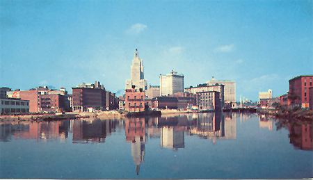 This 1960s postcard (above) shows how the Industrial Trust Building dominated the skyline of Providence at the time. A singular dominant skyscraper was common in many American cities in the mid-twentieth century. Some are on Route 6 including Los Angeles, Tonopah, Denver, Moline, Cleveland, and Hartford. It was easy to see the Industrial Trust Building from Route 6 while negotiating the busy downtown streets, although it was a block away. Right on 6, however, was the Providence Biltmore (1920s postcard, right). It was opened in 1922 with 600 rooms. Although closed between 1974 and 1979, the hotel is open today with 292 rooms and is listed on the National Historic Register.