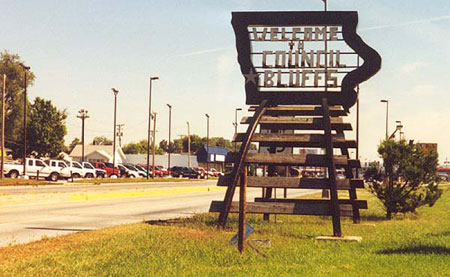 Just east of the Ak-sar-ben Bridge over the Missouri River, we found a map-based welcome to Council Bluffs and Iowa. ("Ak-Sar-Ben," you ask? You figure it out!)