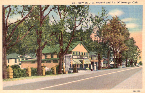 The reverse side of this postcard, probably from the late 1930s, describes this facility: "A gentle resort of the highest character. Its modern for rent cottages, excellent hotel accomdations, unsurpassed beach, beautiful parks, and every varied recreation are here for your health and pleasure." A pleasant forty mile drive on Route 6 brought in customers from Cleveland. Alas, it is no longer there. (Curt Teich Postcard Archives, Lake County Illinois Discovery Museum) |