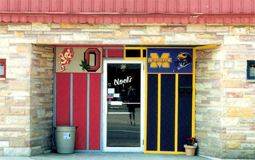 Distance from Columbus must be inversely related to loyalty to Ohio State athletic teams. And proximity to Michiagan must bring out a few Wolverine fans. At Noel's bar in Napoleon, loyalties were divided when this July 1998 photo was taken. |
