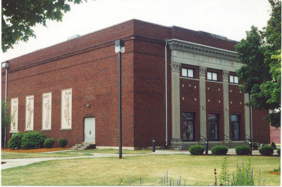 As the original Route 6 wends its way through the central parts of the towns and cities, it encounters many public buildings. This one is the Arts and Education Auditorium, which is just east of downtown Bryan. (July 1999 photo) |