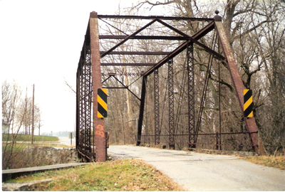 This historic bridge survives on an old road segment east of New Rochester. (November 2001 photo) |